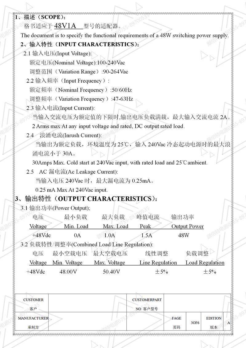 電源規(guī)格書(shū)